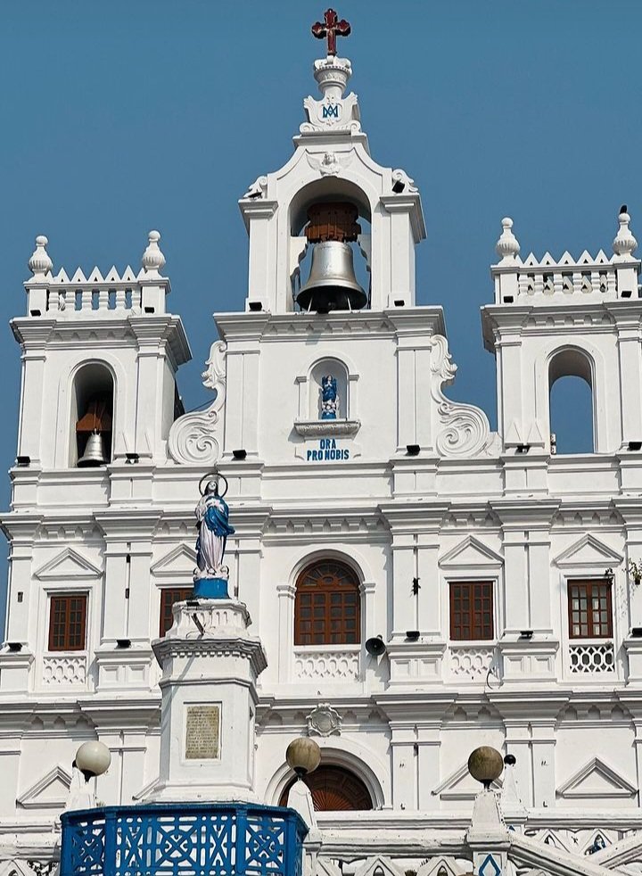 Situated atop the Altinho hill, overlooking the flowing Mandovi River, the Church of Our Lady of the Immaculate Conception stands as one of Goa’s most iconic landmarks. Built originally in 1541 as a small chapel for Portuguese sailors arriving from Lisbon, it was later expanded into a grand church in 1609 to serve as a parish church for the growing population of Panjim. The distinctive Baroque architecture, the twin towers, and the bell — one of the second largest in Goa — have made it an integral part of Goa’s heritage. But what truly gives this church its soul is the annual feast that draws thousands of devotees and visitors each year.